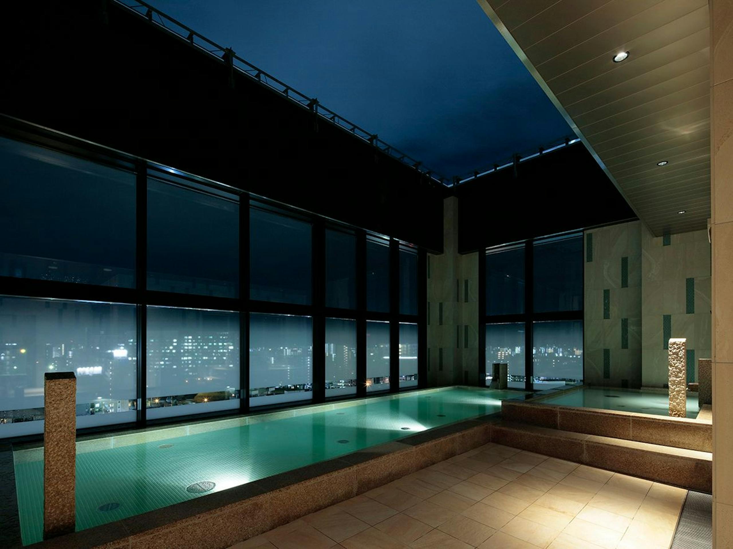 1.日本庭園を眺める大浴場